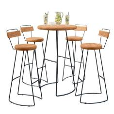 Kit Mesa Bistrô Redonda E 4 Banquetas Alta Astra Com Encosto Base Metálica - Pallazio