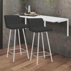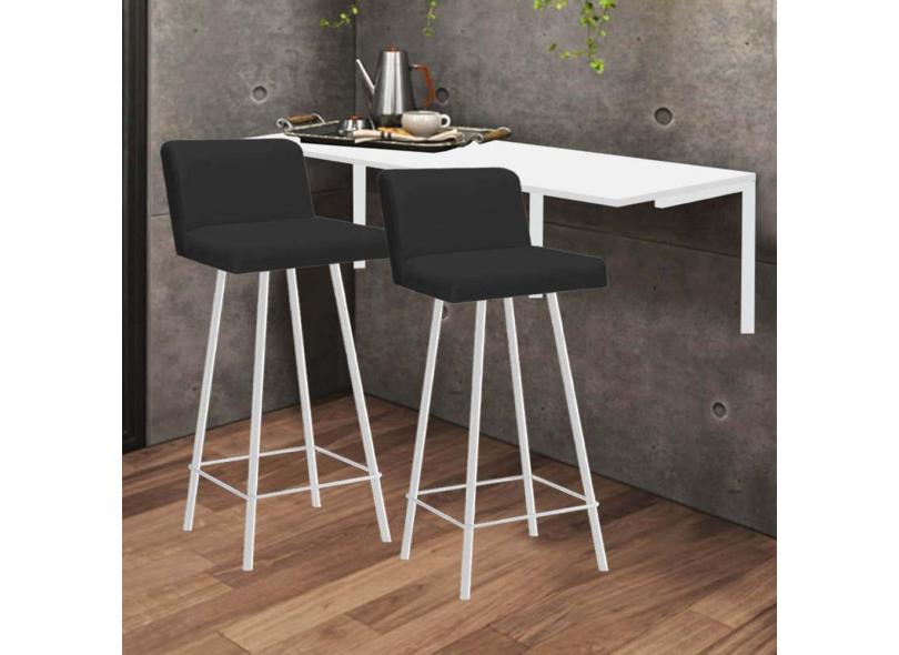 Kit Mesa Suspensa de Parede Fixa MDF Branco + 2 Banquetas Lexi Ferro Branco Sintético Preto - Ahazzo Móveis
