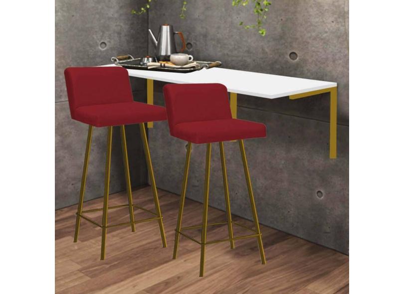 O menor preço encontrado no Brasil para Kit Mesa Suspensa de Parede Fixa MDF Branco + 2 Banquetas Lexi Ferro Dourado Corino Vermelho - Ahazzo Móveis atualmente é R$ 889,90.