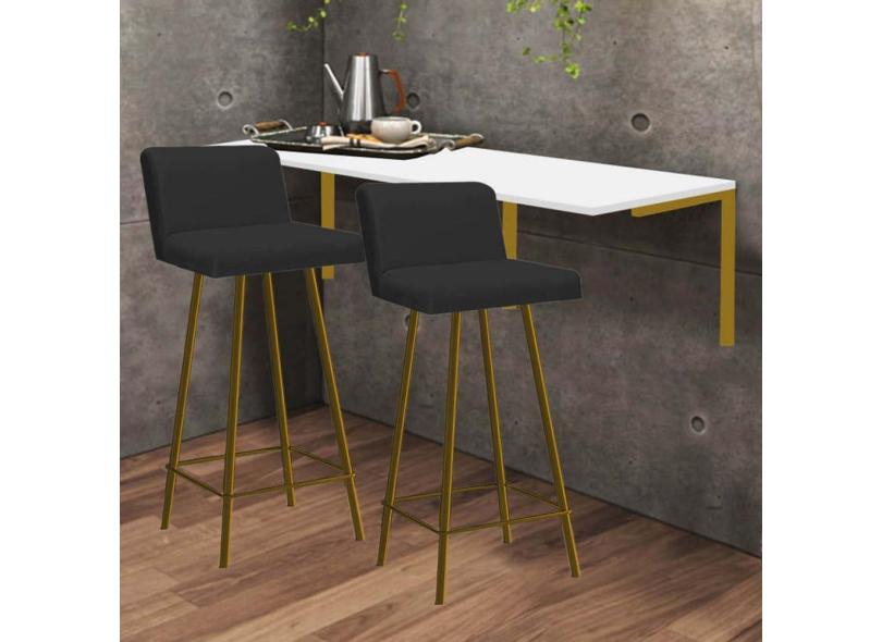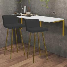 O menor preço encontrado no Brasil para Kit Mesa Suspensa de Parede Fixa MDF Branco + 2 Banquetas Lexi Ferro Dourado Sintético Preto - Ahazzo Móveis atualmente é R$ 889,90.
