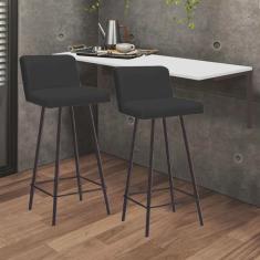 Kit Mesa Suspensa de Parede Fixa MDF Branco + 2 Banquetas Lexi Ferro Marrom Sintético Preto - Ahazzo Móveis
