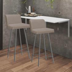 O menor preço encontrado no Brasil para Kit Mesa Suspensa de Parede Fixa mdf Branco + 2 Banquetas Lexi Ferro Prata Sintético Bege - Ahazzo Móveis atualmente é R$ 889,90.