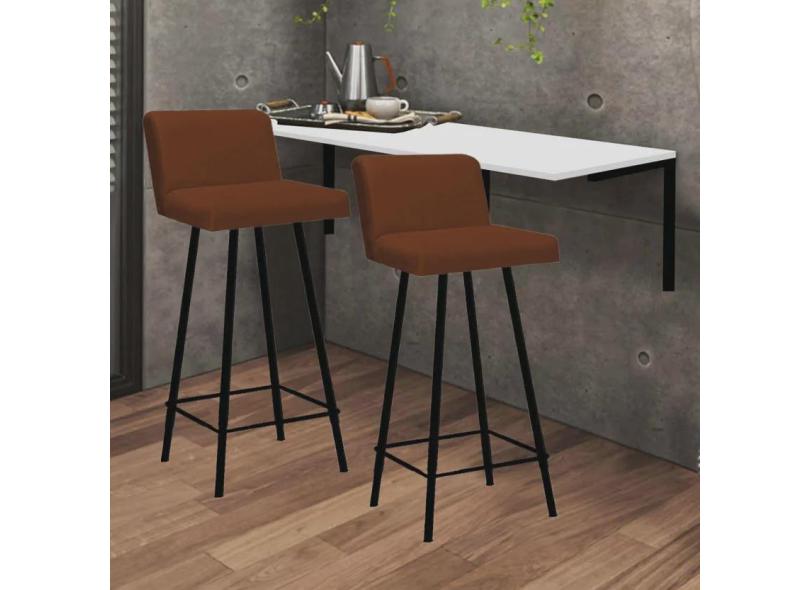 Kit Mesa Suspensa de Parede Fixa mdf Branco + 2 Banquetas Lexi Ferro Preto Suede Terracota - Ahazzo Móveis