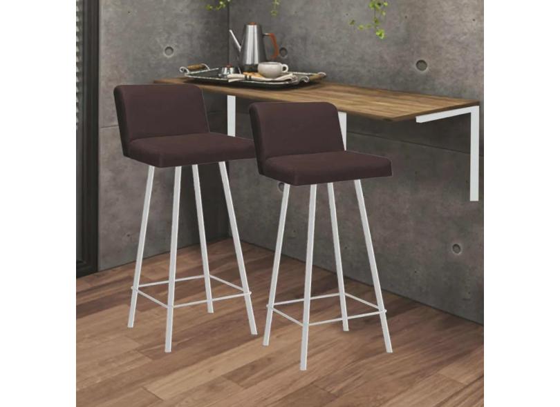 Kit Mesa Suspensa de Parede Fixa mdf Caramelo + 2 Banquetas Lexi Ferro Branco Sintético Marrom - Ahazzo Móveis