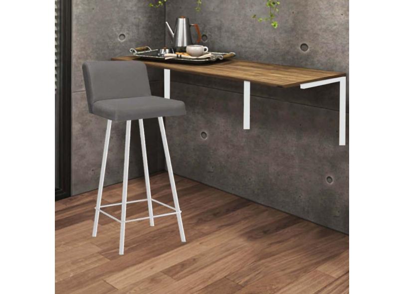 Kit Mesa Suspensa de Parede Fixa MDF Carvalho + 1 Banqueta Lexi Ferro Branco Corino Cinza - Ahazzo Móveis