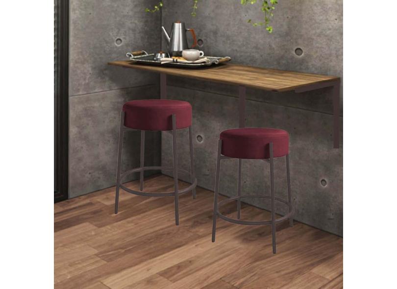 Kit Mesa Suspensa de Parede Fixa MDF Castanho + 2 Banquetas Sintra Ferro Marrom Suede Bordô - Ahazzo Móveis
