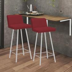 Kit Mesa Suspensa de Parede Fixa MDF Freijó + 2 Banquetas Lexi Ferro Branco Sintético Vermelho - Ahazzo Móveis