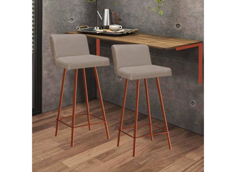 Kit Mesa Suspensa de Parede Fixa MDF Freijó + 2 Banquetas Lexi Ferro Bronze Corino Bege - Ahazzo Móveis