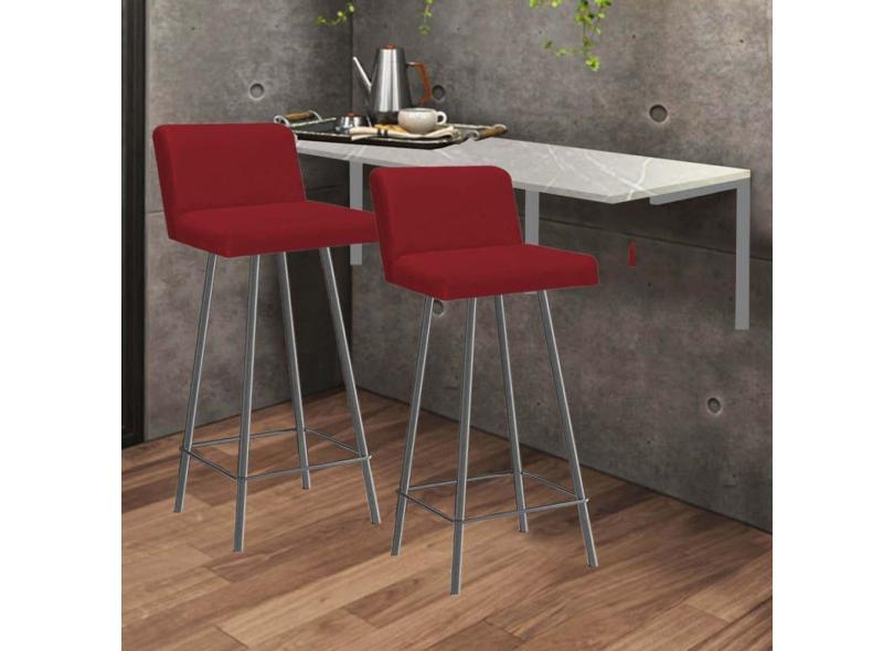 O menor preço encontrado no Brasil para Kit Mesa Suspensa de Parede Fixa MDF Marmorizado + 2 Banquetas Lexi Ferro Prata Sintético Vermelho - Ahazzo Móveis atualmente é R$ 919,90.