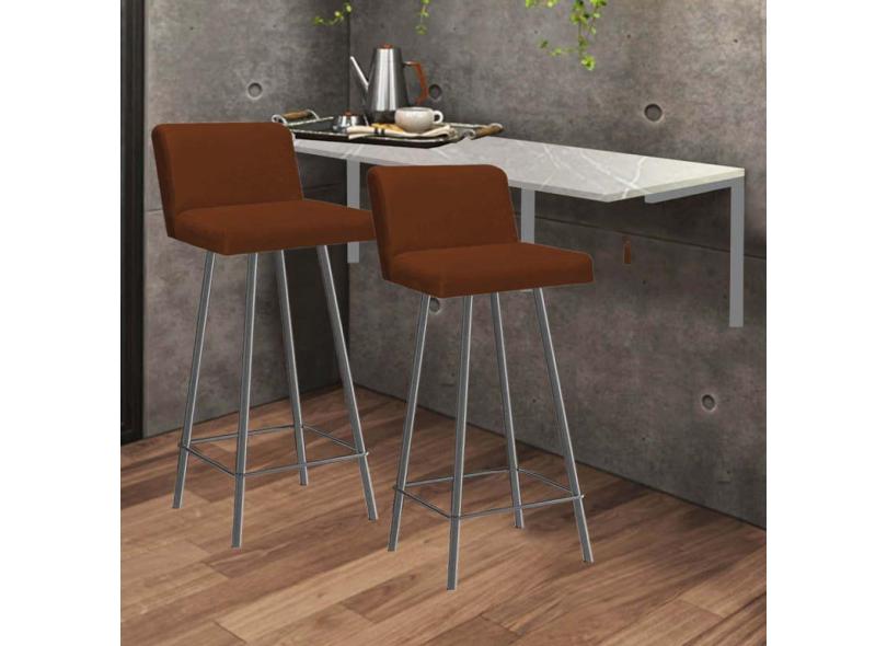 Kit Mesa Suspensa de Parede Fixa MDF Marmorizado + 2 Banquetas Lexi Ferro Prata Suede Terracota - Ahazzo Móveis