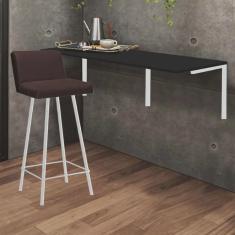 Kit Mesa Suspensa de Parede Fixa mdf Preto + 1 Banqueta Lexi Ferro Branco Sintético Marrom - Ahazzo Móveis