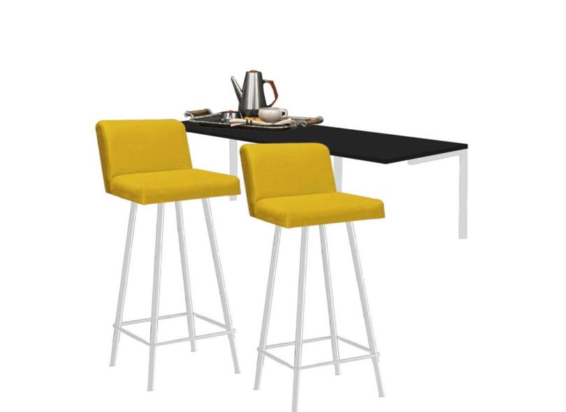Kit Mesa Suspensa de Parede Fixa MDF Preto + 2 Banquetas Lexi Ferro Branco Corino Amarelo - Ahazzo Móveis