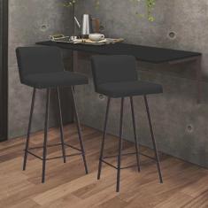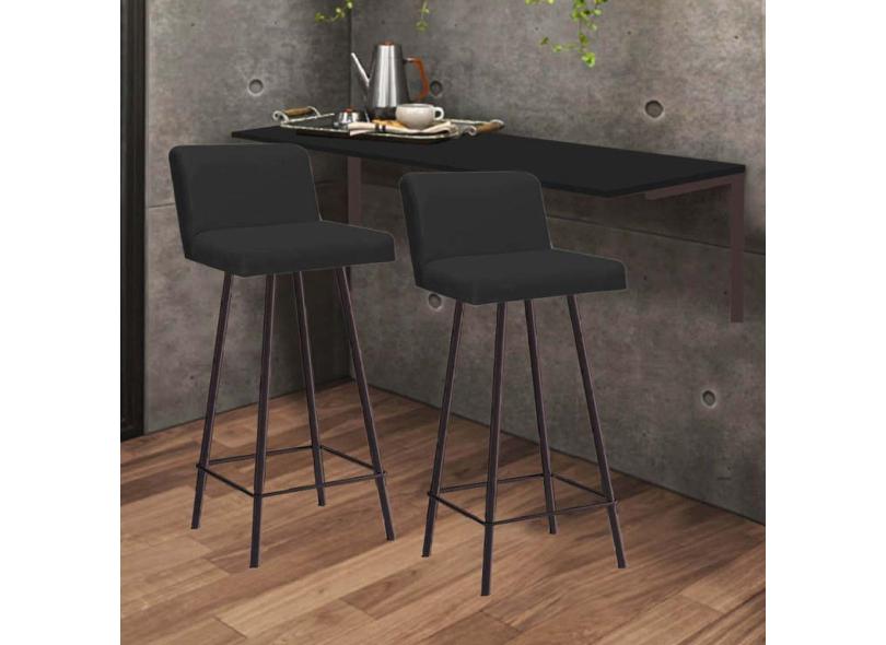 Kit Mesa Suspensa de Parede Fixa MDF Preto + 2 Banquetas Lexi Ferro Marrom Sintético Preto - Ahazzo Móveis
