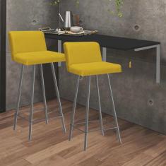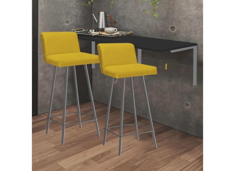 Kit Mesa Suspensa de Parede Fixa mdf Preto + 2 Banquetas Lexi Ferro Prata Sintético Amarelo - Ahazzo Móveis