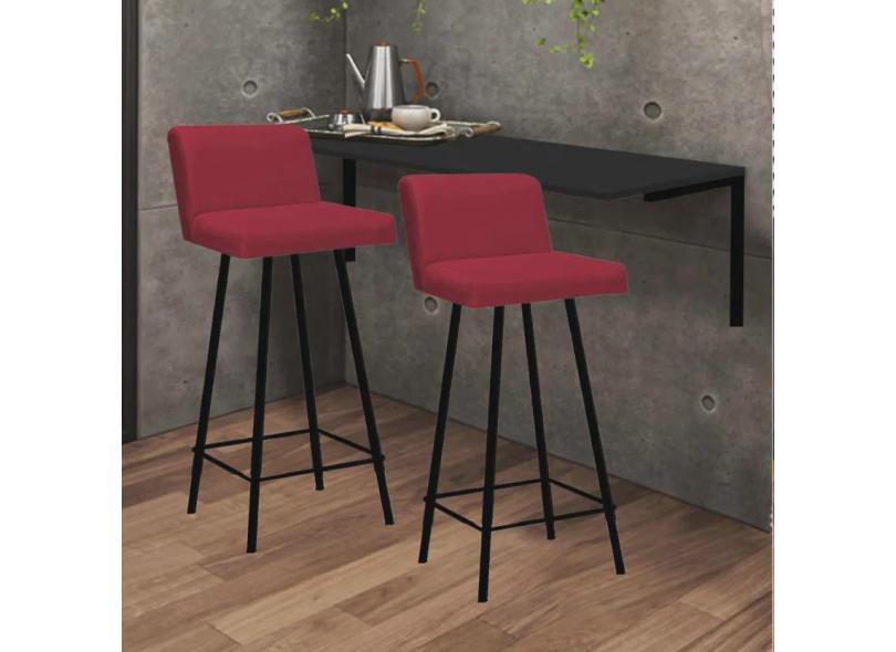 O menor preço encontrado no Brasil para Kit Mesa Suspensa de Parede Fixa mdf Preto + 2 Banquetas Lexi Ferro Preto Sintético Vermelho - Ahazzo Móveis atualmente é R$ 919,90.