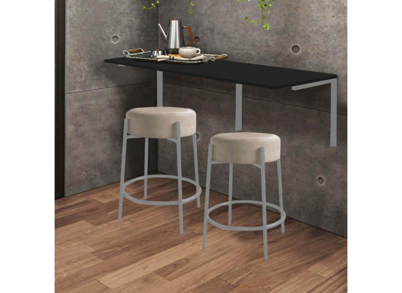 O menor preço encontrado no Brasil para Kit Mesa Suspensa de Parede Fixa MDF Preto + 2 Banquetas Sintra Ferro Prata Sintético Bege - Ahazzo Móveis atualmente é R$ 799,90.