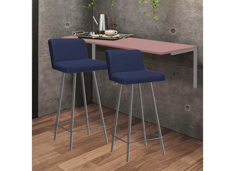 O menor preço encontrado no Brasil para Kit Mesa Suspensa de Parede Fixa MDF Rosa + 2 Banquetas Lexi Ferro Prata Corino Azul Marinho - Ahazzo Móveis atualmente é R$ 919,90.