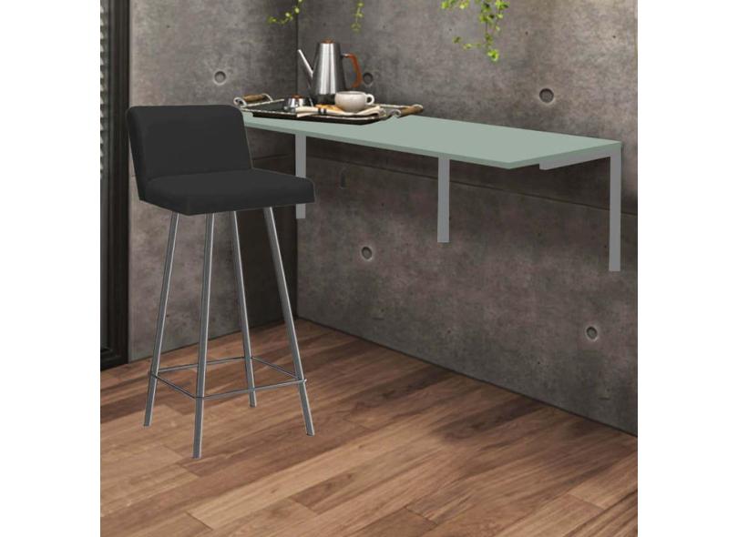 Kit Mesa Suspensa de Parede Fixa MDF Verde Oliva + 1 Banqueta Lexi Ferro Cinza Corino Preto - Ahazzo Móveis