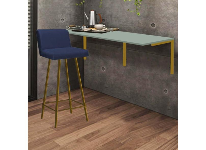 Kit Mesa Suspensa de Parede Fixa MDF Verde Oliva + 1 Banqueta Lexi Ferro Dourado Corino Azul Marinho - Ahazzo Móveis