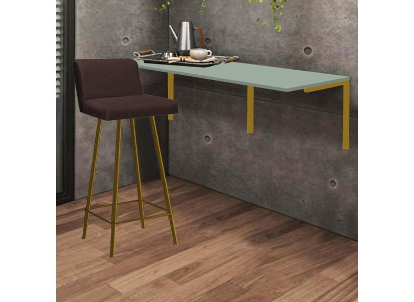 Kit Mesa Suspensa de Parede Fixa MDF Verde Oliva + 1 Banqueta Lexi Ferro Dourado Corino Marrom - Ahazzo Móveis