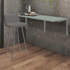 Kit Mesa Suspensa de Parede Fixa MDF Verde Oliva + 1 Banqueta Lexi Ferro Prata Sintético Cinza - Ahazzo Móveis