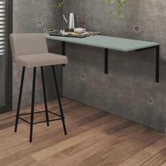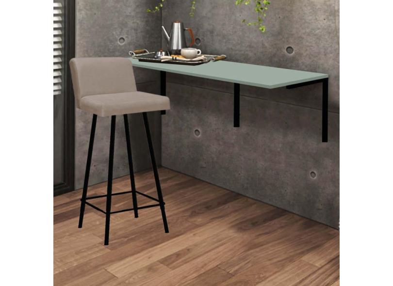 Kit Mesa Suspensa de Parede Fixa MDF Verde Oliva + 1 Banqueta Lexi Ferro Preto Sintético Bege - Ahazzo Móveis