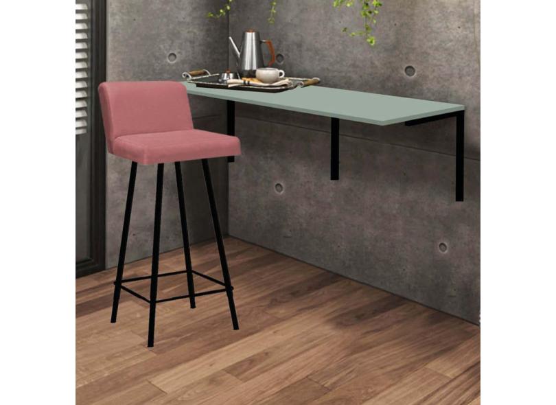 Kit Mesa Suspensa de Parede Fixa MDF Verde Oliva + 1 Banqueta Lexi Ferro Preto Suede Rose - Ahazzo Móveis