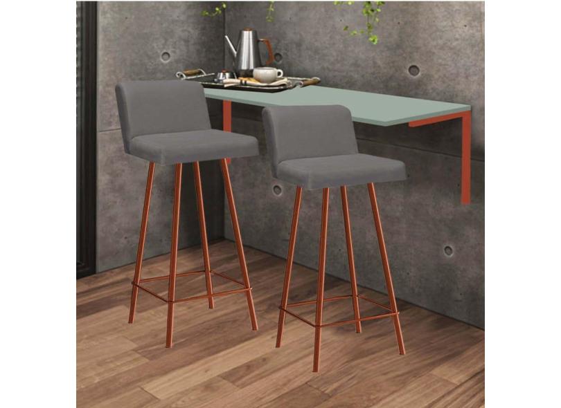 Kit Mesa Suspensa de Parede Fixa MDF Verde Oliva + 2 Banquetas Lexi Ferro Bronze Sintético Cinza - Ahazzo Móveis