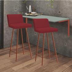 Kit Mesa Suspensa de Parede Fixa mdf Verde Oliva + 2 Banquetas Lexi Ferro Bronze Sintético Vermelho - Ahazzo Móveis