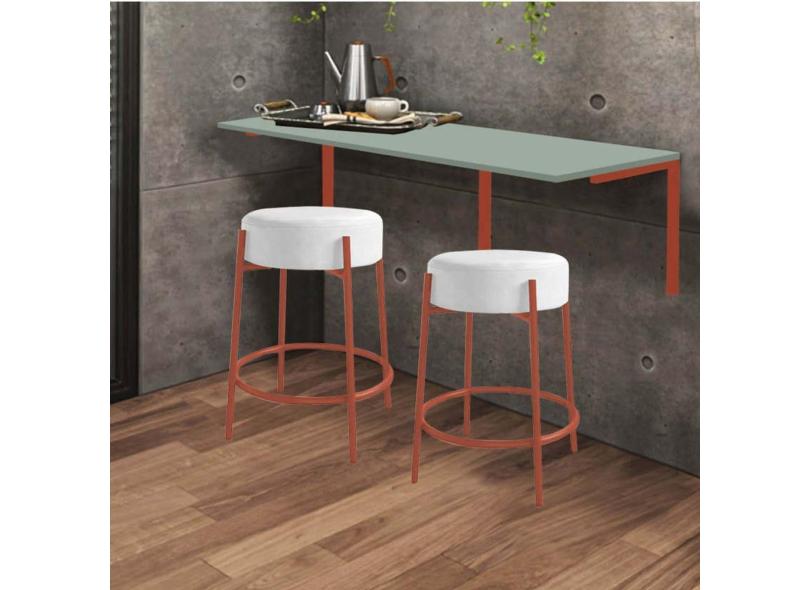 Kit Mesa Suspensa de Parede Fixa MDF Verde Oliva + 2 Banquetas Sintra Ferro Bronze Corino Branco - Ahazzo Móveis