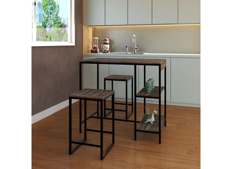 Mesa Bistrô 100cm 2 Banquetas Active Yescasa Carvalho Dark/Preto