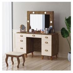 Penteadeira Camarim New Seul Com Banqueta Almofadada Ambiente Malbec O