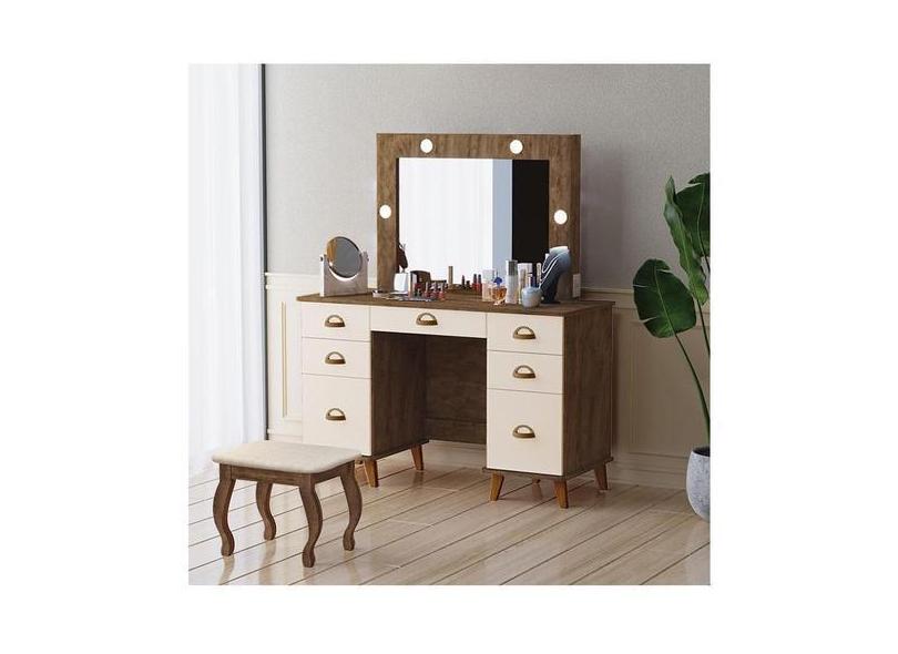Penteadeira Camarim New Seul Com Banqueta Almofadada Ambiente Malbec O