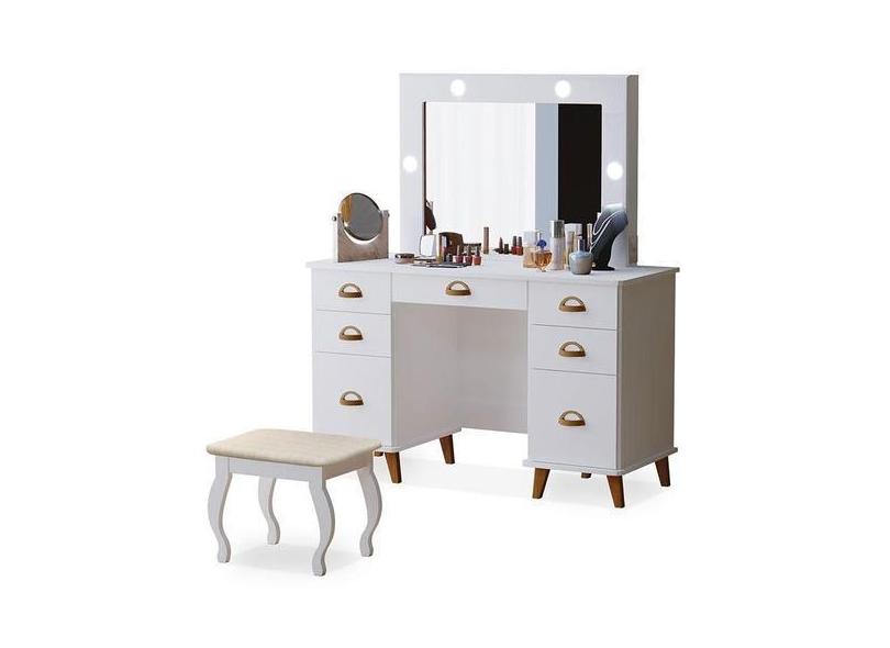 Penteadeira Camarim New Seul Com Banqueta Almofadada Branco - Luapa