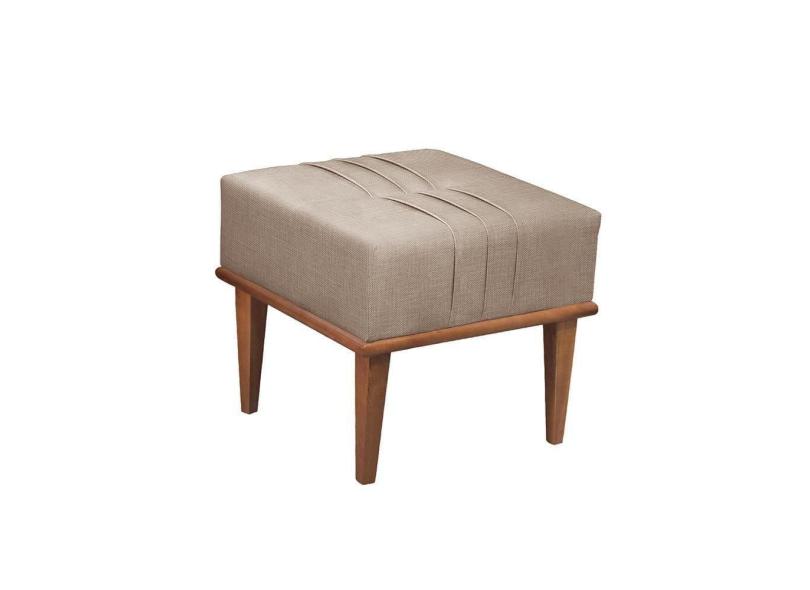 Puff Banqueta Maya Luxo Madeira Maciça Castellar Móbile Linho Cappuccino