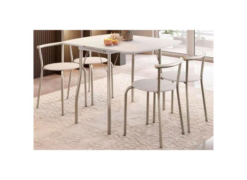 Sala de Jantar Completa Mesa Dobrável e 4 Banquetas 105 Prata/Branco - Prata/Branco - Carraro