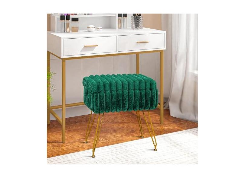 xuperbonus Banqueta de pele sintética com otomana de armazenamento, cadeira de penteadeira para sala de maquiagem, banquetas de penteadeira para quarto, apoio para os pés com pernas de metal e como