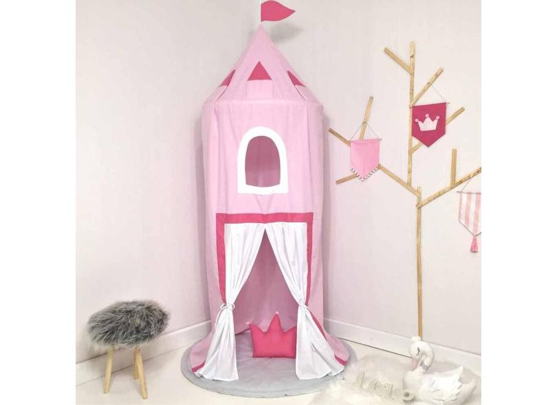 Cabana Infantil Tenda Dossel 04 Peças E Tapete Castelo Rosa