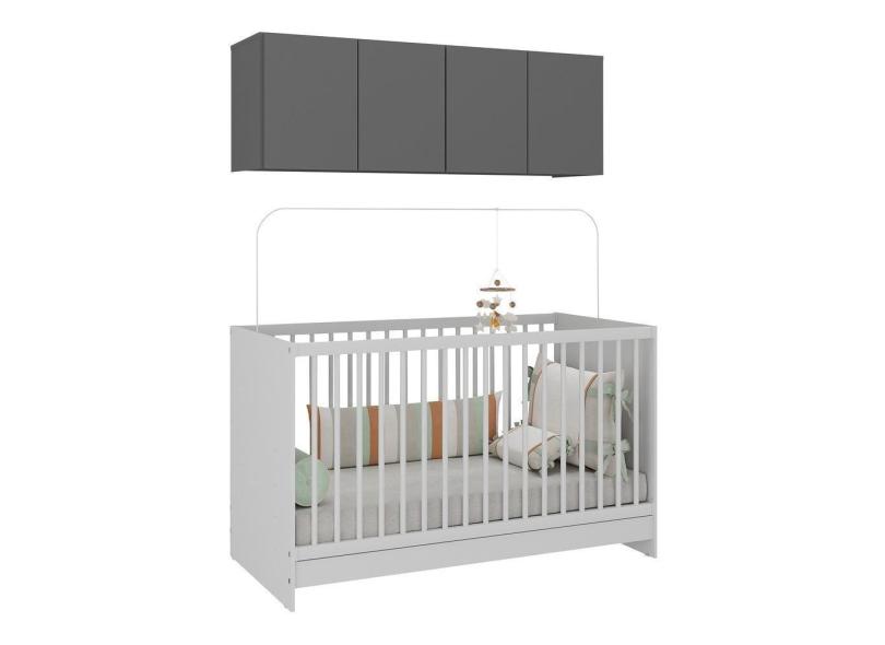 Berço 3 Em 1 Com Armário Aéreo 4 Portas Mp4140 Branco-grafite Branco-grafite
