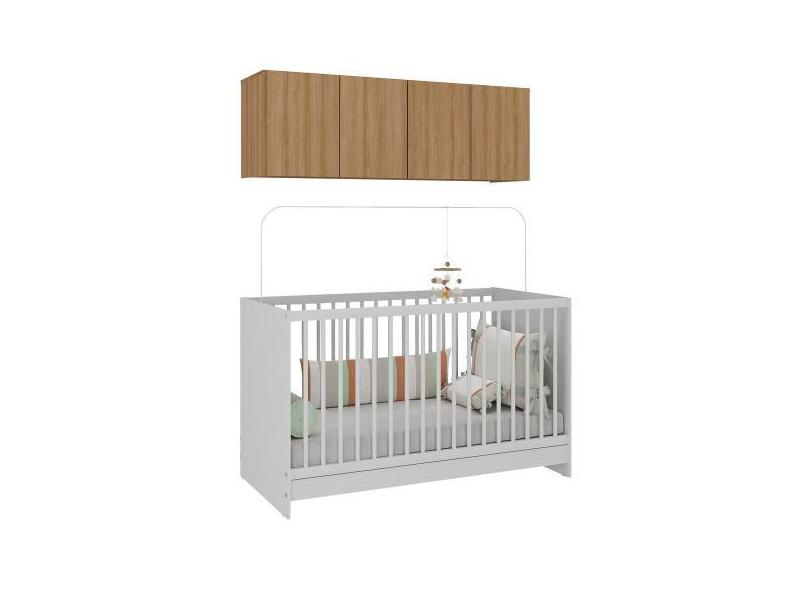 Berço 3 em 1 com Armário Aéreo 4 portas Multimóveis MP4140, Branco/Rus