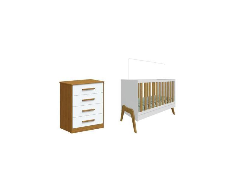 Berço 5x1 Guti e Cômoda Charlo 04 gavetas Moveis Peroba MDF, Branco Am