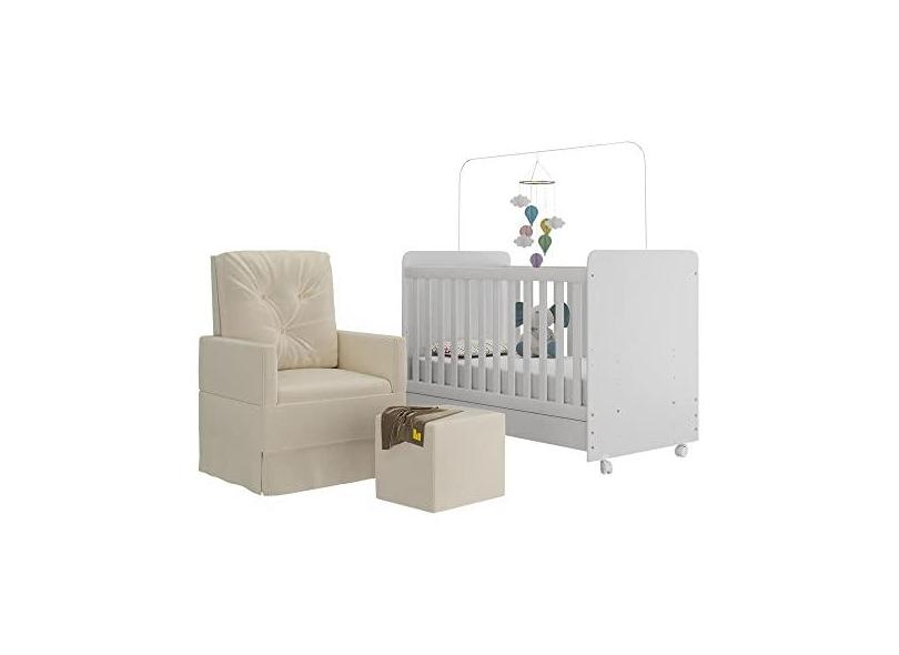 Berço Americano 3x1 com Colchão, Poltrona Amamentação e Puff Bambino Multimóveis Mp4101 Branco/bege