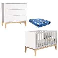 Berço Americano com Colchão e Cômoda Gaveteiro Classic Branco Pés Made