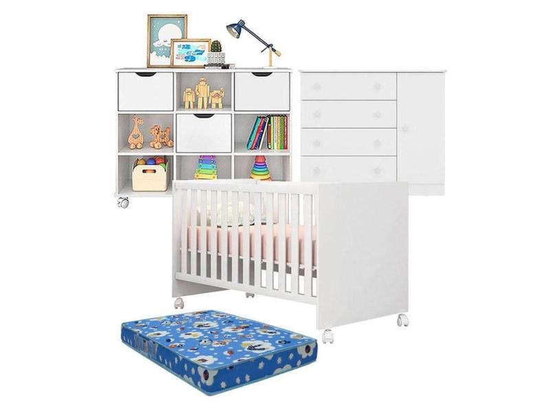 O menor preço encontrado no Brasil para Berço Americano Doce Sonho 100 com Rodízios e Cômoda 2561 com Nicho Organizador 3 Gavetas Branco Brilho com Colchão - Qmovi atualmente é R$ 1.090,09.