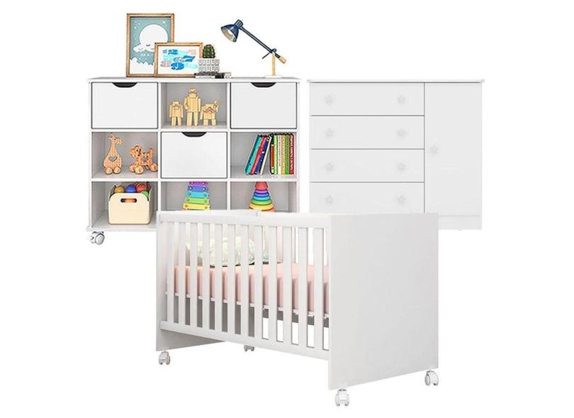 O menor preço encontrado no Brasil para Berço Americano Doce Sonho 100 com Rodízios e Cômoda 2561 com Nicho Organizador 3 Gavetas Branco Brilho - Qmovi atualmente é R$ 964,61.