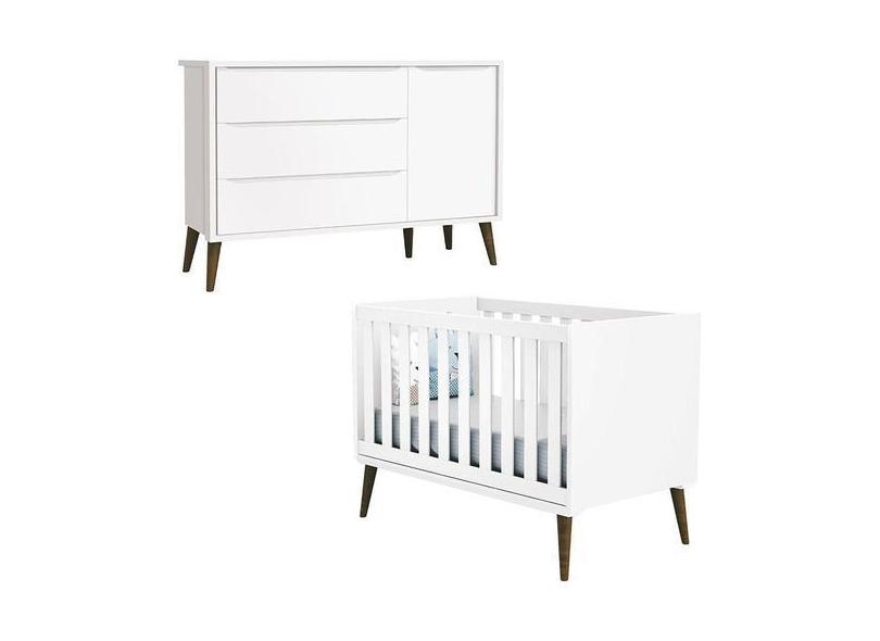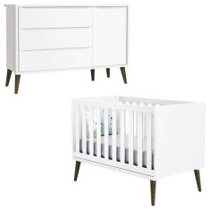 Berço Americano e Cômoda com Porta Infantil Theo Branco Acetinado com