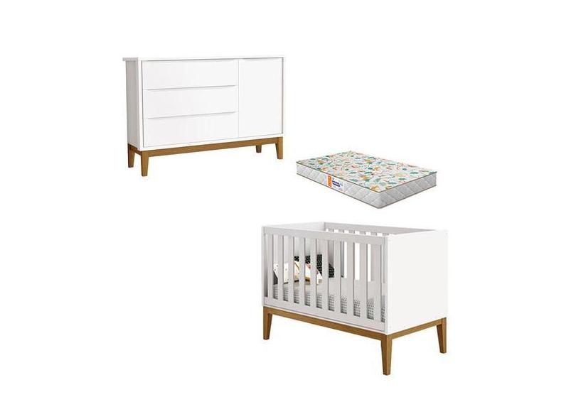 O menor preço encontrado no Brasil para Berço Americano e Cômoda New Classic Branco com Pés Madeira e Colchão atualmente é R$ 1.489,05.