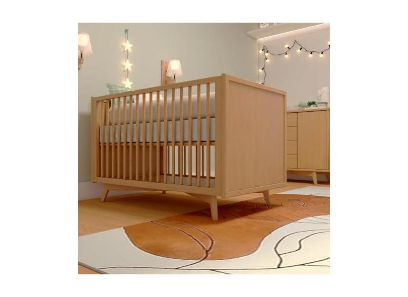 Berço Americano em MDF Grade Fixa Zen Nogueira