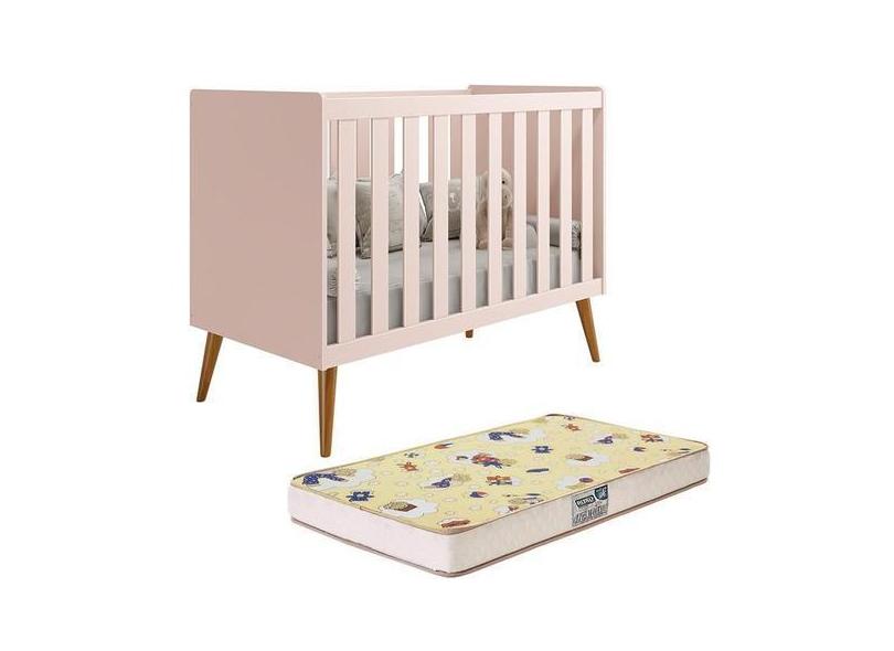 Berço Americano Isis Rosa com Colchão Supreme - Reller Móveis, Rosa