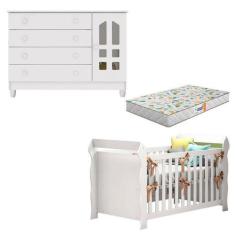 Berço Americano Lara com Colchão Gazin e Cômoda Gran Selena Branco Bri